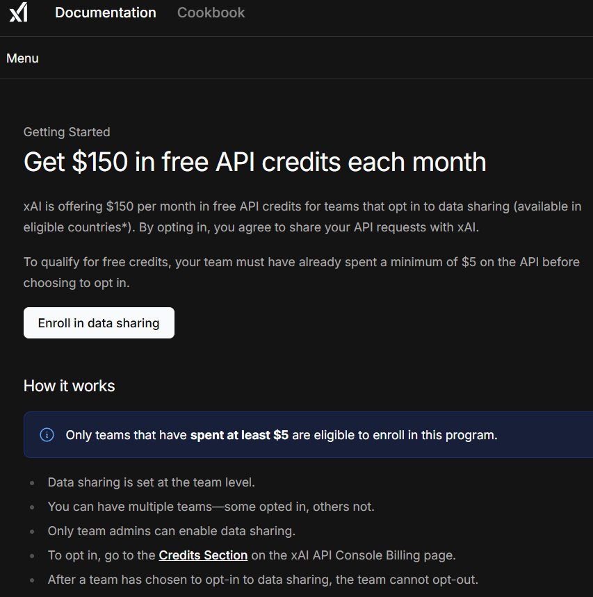 【活动已结束】xAI推出数据共享计划,每月提供150美元免费API额度
