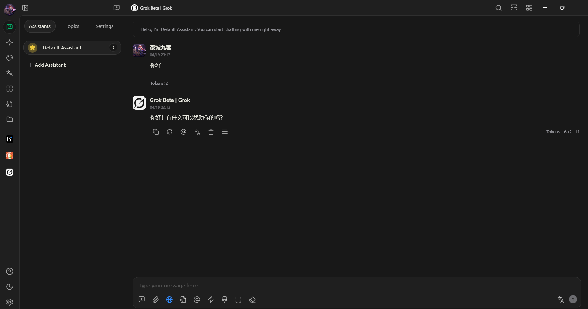 推荐使用 ChatWise 或 Cherry Studio 等客户端,它们本身就内置了 xAI 的支持。下面以开源的 Cherry Studio 客户端为例子,你可以按照方法配置,就能使用 Grok 3 API 进行问答了。速度很快,如下图: