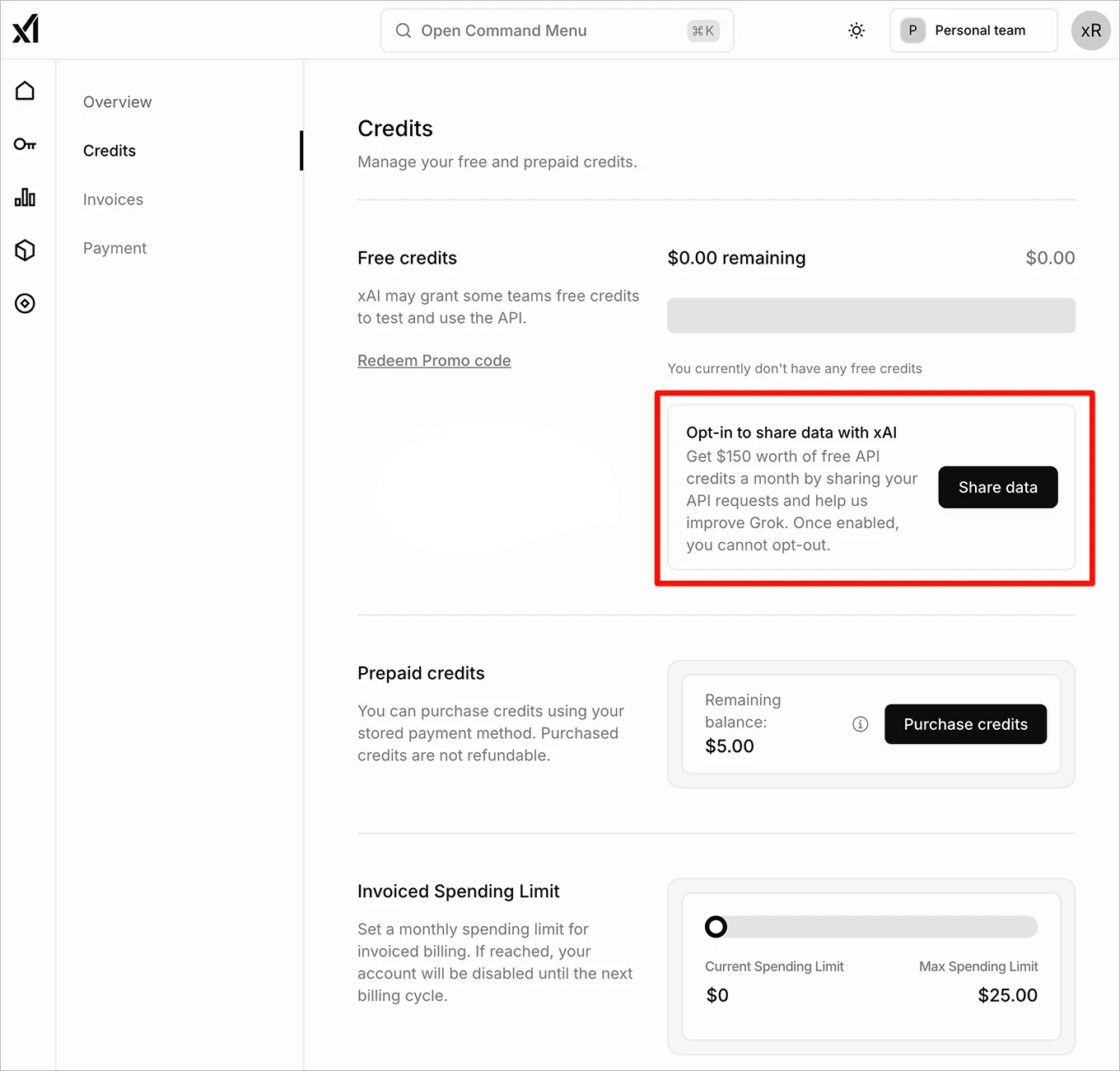 xAI 已在 2025 年 5 月停止提供免费 API 套餐(150 美元积分