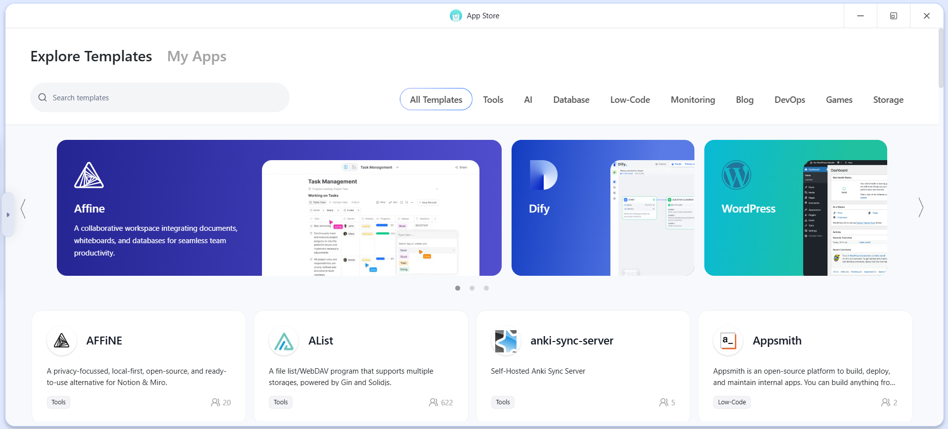ClawCloud Run 的应用商店支持多种常见的开源项目,从内容管理系统 WordPress 到数据社区 Gitea 等各类应用,满足了广泛的用户需求 。这种丰富的应用支持使得用户可以快速找到并部署所需的开源程序,无需从头开始搭建 。