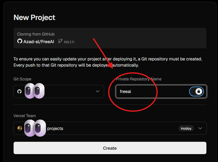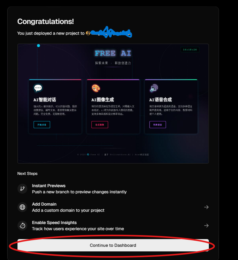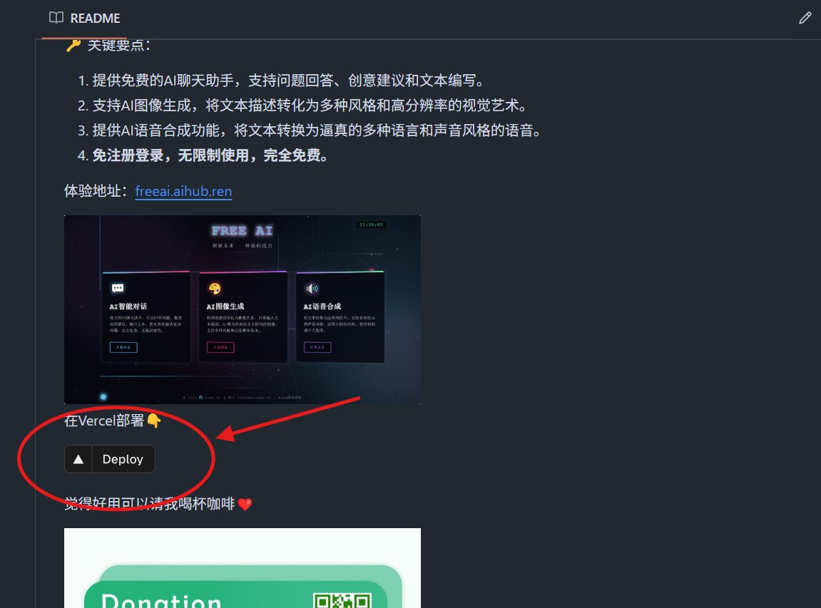 点击 “在Vercel部署👇” 下的黑色按钮。