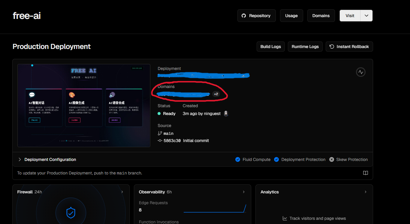 - “Domain” 下就是你的项目网址,打开此网址就能畅享了!