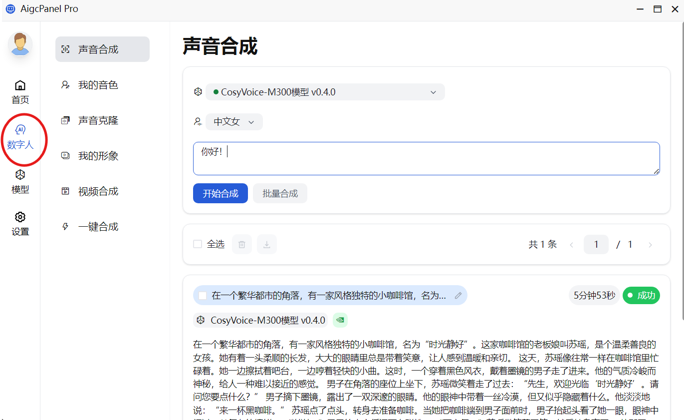 AigcPanel支持视频数字人合成,能够将视频画面和声音进行精准的口型匹配。这意味着你可以轻松地创建出栩栩如生的数字人视频,无论是用于教育、娱乐还是商业演示,都能带来令人惊叹的视觉效果。